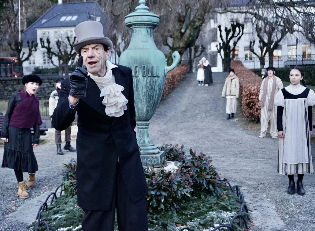 Seremonimester for vandringen er Murmester Mons Dahl, som var den som grunnla Assistentkirkegården i 1837 og den første som ble begravet der. Han spilles av Helge Jordal, som vil lede publikum rundt, binde historiene sammen og skape en ramme for formidlingen. Underveis møter vi aktører, både barn og voksne, fra Vestlandske Teatersenters Teaterskole i samspill med profesjonelle musikere og scenekunstnere fra Bergen.